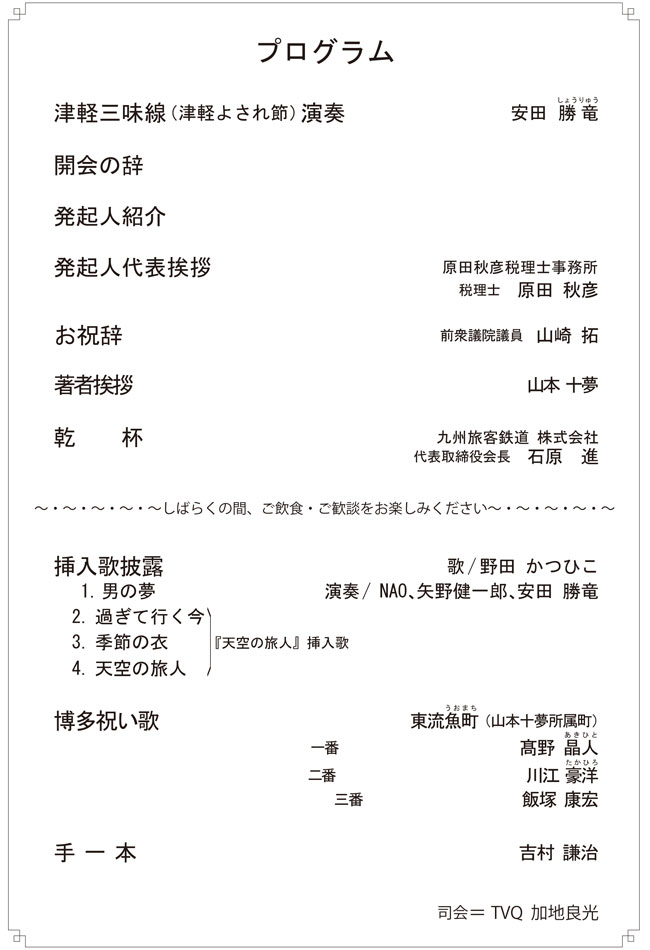 ★会名:山本十夢著 天空の旅人~今甦る博多の豪商 神屋宗湛(そうたん)~出版記念祝賀会