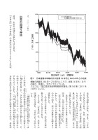 8出雲の国譲りの話は、およそ、つぎのようなものである。なお、出雲の国譲りの話は、『古事記』『日本書紀』で語られているばかりではない。『出雲国風土記』『出雲の国くにのみやつこのかんよごと造神賀詞』などの文献にも記されている。出雲を中心とする世界・葦原の中つ国は、大国主の神が治めていた。高天の原の神々は、建たけ御み雷かずちの神かみをつかわして、大国主の神がおさめる葦原の中つ国を、高天の原勢力に譲るよう談判をした。この高天の原勢力は、北九州方面の勢力であったと考えられる。たとえば、『古事記』は、出雲との国譲りの交渉を、つぎのように記している。「建たけ御み雷かずちの神かみと天あめの鳥とり船ふねの神かみの二は2、二〇一三年)出雲の国譲り神話話は、出雲の国譲り伝承からはじまる。『古事記』『日本書紀』の神話の伝えるところによれば、しらの神は、出いずも雲の国の伊い那な佐さの小お浜ばまにくだり到着して、十と掬つかの剣を抜いて、さかさまに浪なみのさきに刺さしたて、その剣のきっさきに足をくんですわって、大国主の神にたずねてのべられた。『天あま照てらす大おお御み神かみと高たか木ぎの神かみのご命令で、お前の意向をたずねるために派遣されたものだ。お前が図1 日本産樹木年輪の示す炭素14年代とIntCa109との比較横軸の西暦年260年~270年のところで、炭素14年代(BP)の値が、急激に、大きく下がっている。グラフは、『国立歴史民俗博物館研究報告』第163集〔2011年3月刊〕による。炭素14年代(BP)較正年代(cal.)(西暦年)